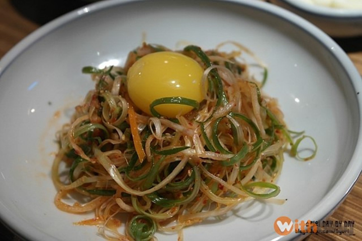 这里的拌葱条很特别,上面有生蛋黄,有点像生拌牛肉,嘻嘻嘻