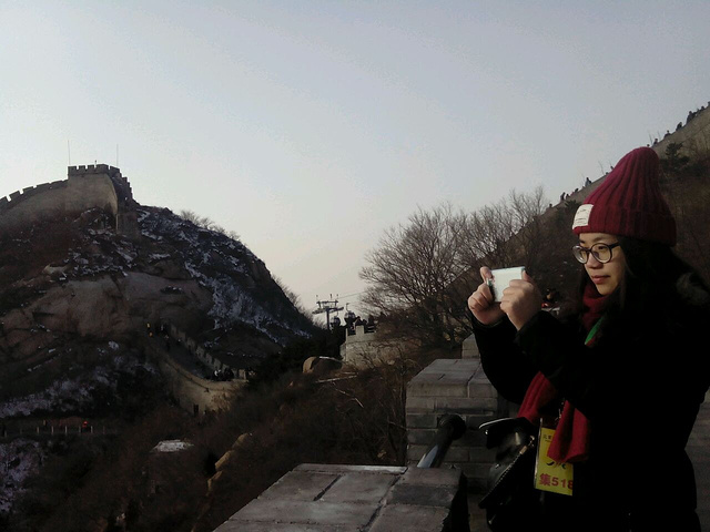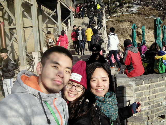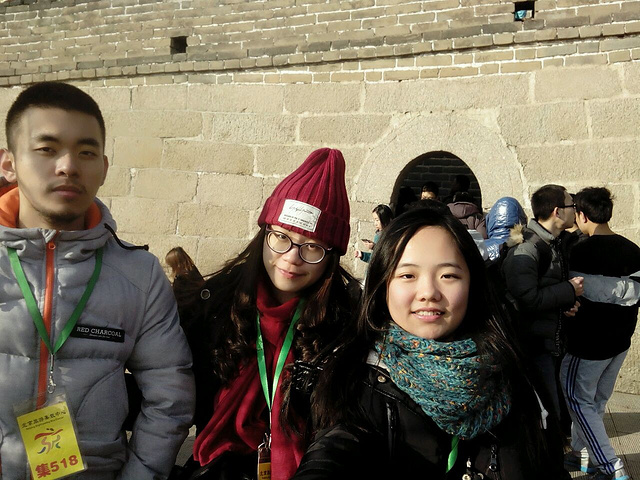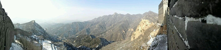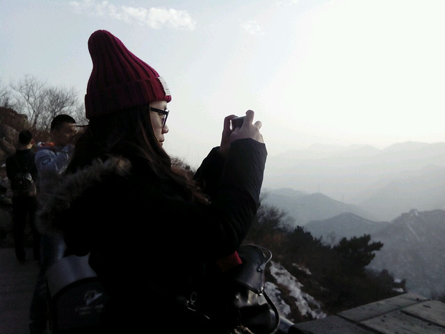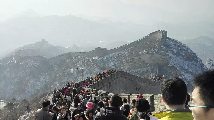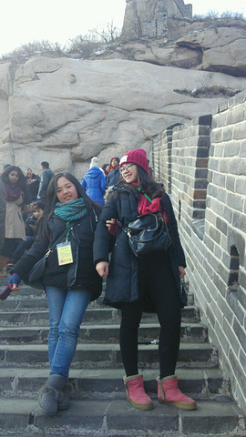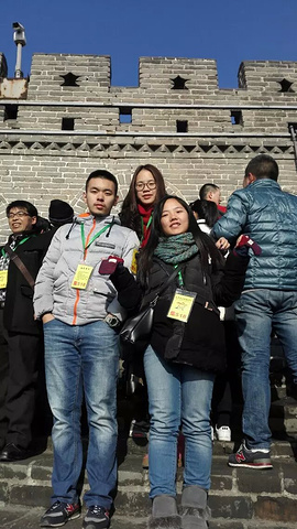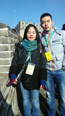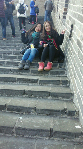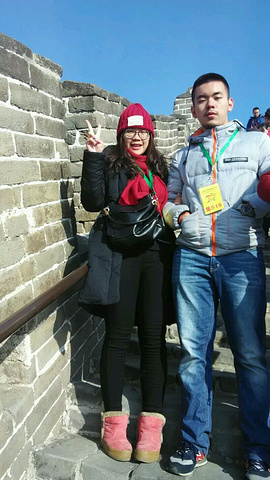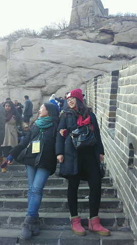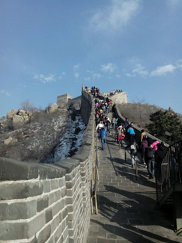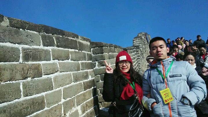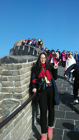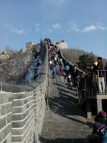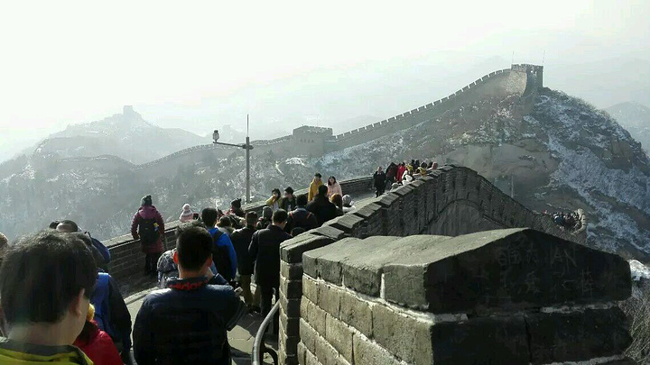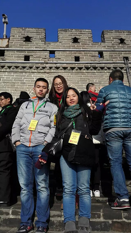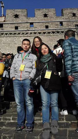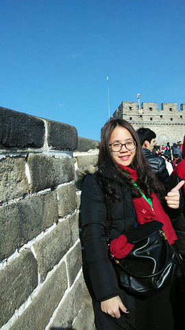 虽说现在不是旺季,这的人流也是不少啊,密密麻麻的挤满了人,在那拍了好多张集体大合照。。。。今天天气超好,天空蓝得很,长城壮阔的景色也是一览无余。看着这延绵不绝的长城,心生敬意。不好的一点就是,在城墙上看到了很多以前没素质的游客刻下的姓名,我们的文物被破坏了,觉得很是可惜。