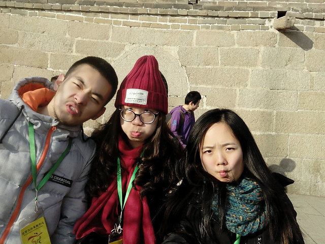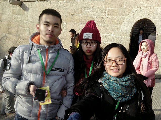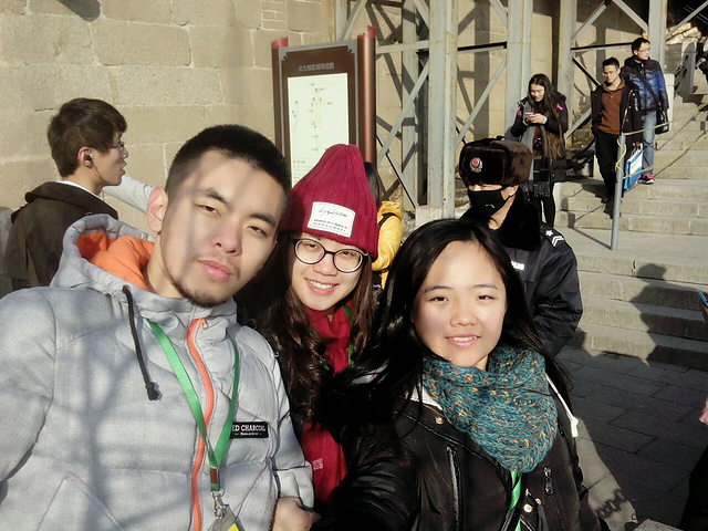 今天我们起床真是出乎意料的准时,3点多好像就起床了。然后垲就去洗澡,瑜和娜娜吃早餐。搞定了之后就下街口等接我们的面包车了。很快,我们到北海公园上了大巴,又开始睡了。这一次的导游是中年妇女,讲解词都比较朴实,所以听她介绍景点的时候我们整车人都感觉异常的困,很催眠=_=,没办法不睡。。。