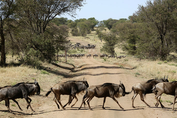 我们经过区域,逐渐接近恩杜图区域东南部,开始出现一系列的短草平原,据介绍,在塞伦盖蒂东南部的恩杜图,这里是非洲野生动物大迁徙开始的地方,也是大迁徙结束的地方同时还是小角马出生的地方,这里的短草平原形成原因都归结于自然地理的作用,由于这地方地势开阔,远处有很多可喷发的火山,火山喷发出的火山灰吹到广袤的土地上,因为这样一层火山灰使得这里的土壤本来覆盖不厚,但是这些飘落的火山灰含带大量可以帮助草类生长的钾等元素,所以作为肥料,让这里的草类更具营养物质。也正是这样的原因,角马们选择在此产子,拼命吃草,储备身体能量,为新一次的迁徙做准备。只可惜在每年的1、2月份来这里才能看到。