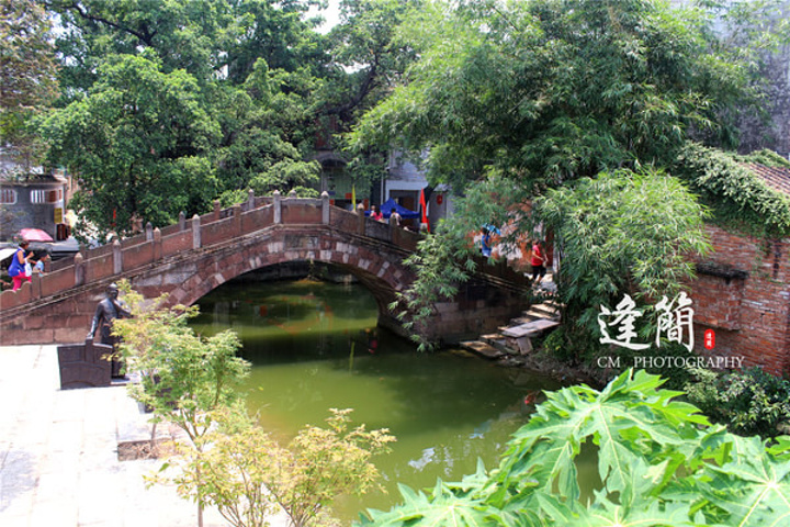 金鳌桥,清康熙年间的太子老师刘云汉所建,桥上柱顶形像官帽,桥四周的古榕、芭蕉、农舍与古桥相映成趣,颇有味道