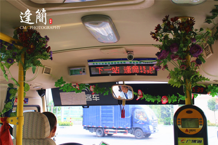383公交,贯穿逢简村的小巴,车辆很小,但里面布置得很特别,树藤、假花束、枫铃、真的富贵竹等,每一辆383都有布置,料想是旅游景区的车故意打扮一番,2元一次,经过逢简村的几大标志性地方,村委会、高社、后街、市场、等。有些自驾的人停车后也会利用383进行接驳,非常方便,而且车次很密集。