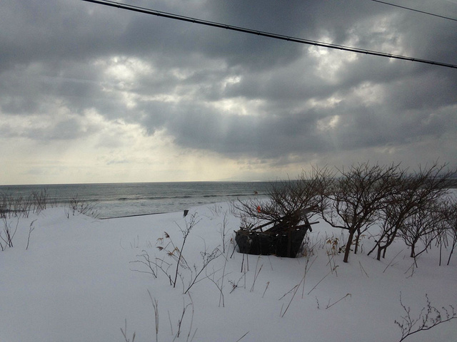 旅途到此,剩下的就是赶路了. 今天要用一天的时间到东京,基友由于是第二天早上的机票,还得在今天继续赶到关西机场.火车上仍然选的是靠海的位置,天气也算是放晴了,能够一直看到海海が,真他妈大啊来自游记君不见,银装素裹在日本