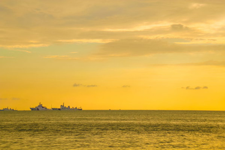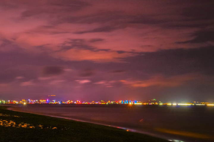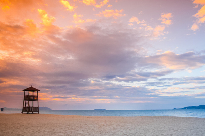 这里有最美的霞光,霞光冲破云层,洒在蔚蓝的海面上,这一刻是美好的