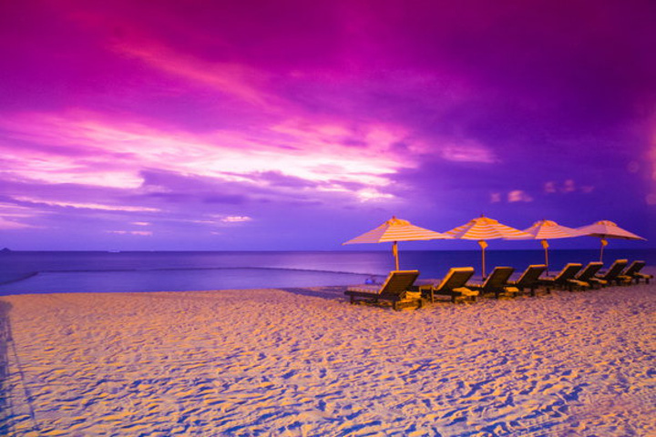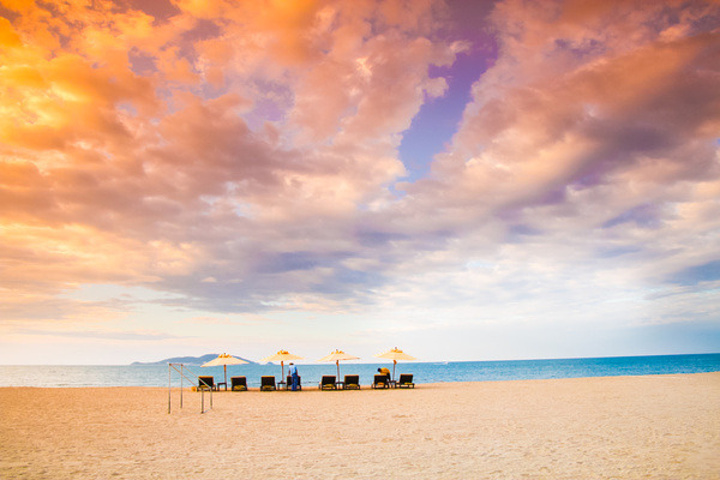 这里的沙滩洁白无瑕,走在上面软软的,你可以放纵你的双脚,在上面使劲踩,使劲揉