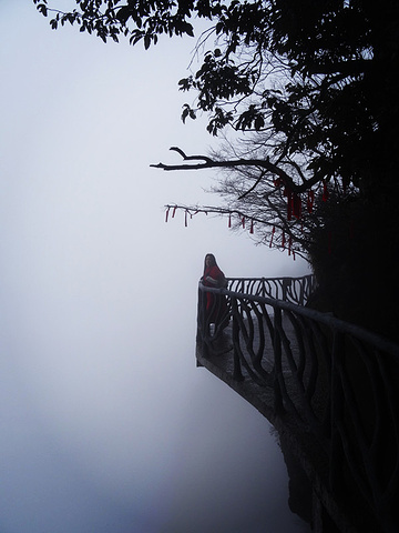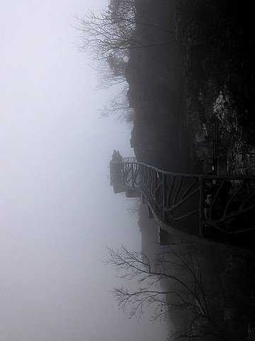 离开的北京的红色预警雾霾来到张家界,还是遇到大雾。我们一直走在云雾中,仙是很仙了,就是真是太冷了,水汽弥漫在山上,外衣头发都被打湿了,远处的景色什么都看不见,距离十米就模糊了。大雾弥漫看不清人影离我十米远就看不清了来自游记十二月悠闲五日张家界之旅
