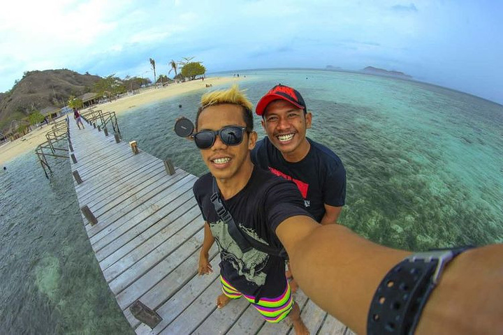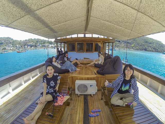 哈哈哈小伙伴已经悠闲的开始准备日光浴了,左边三个自下而上,EVA,女神硕,加加,右边屈蕊和娟儿。加上我和Gani(印尼旅游局给咱的领队小帅哥)一共7个人! we are pirates!!!!