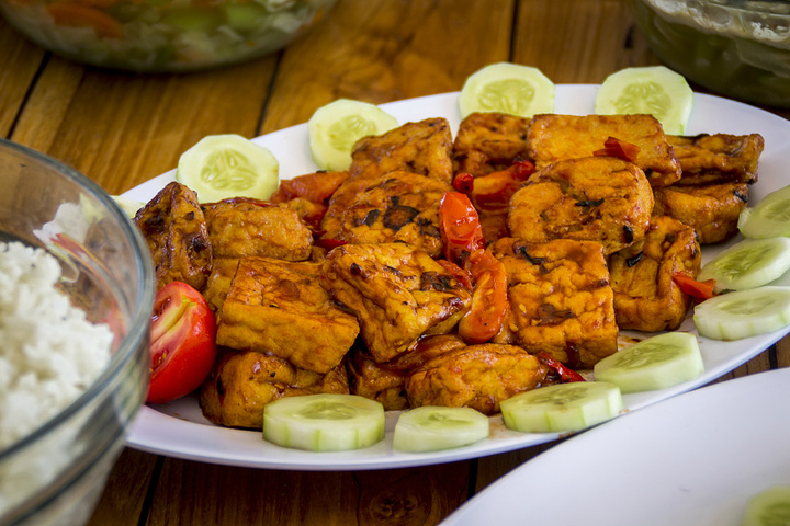 菜肴二:油炸豆腐,外观看起来有点像我们的臭豆腐,不过它完全不是……和我们吃的豆腐感觉略有不同,口感上会老很多。