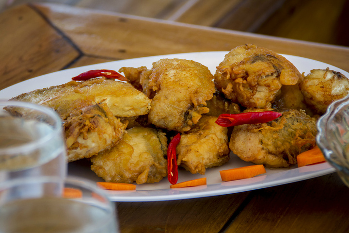 菜肴三:酥炸海鱼,不得不说不愧是海岛国家,这鱼的口号真特么太好了!完全没有腥味,肉质饱满,鲜嫩!其实每天我每天吃这个也就可以了!最好再来点我最爱的空心菜!那就够了!