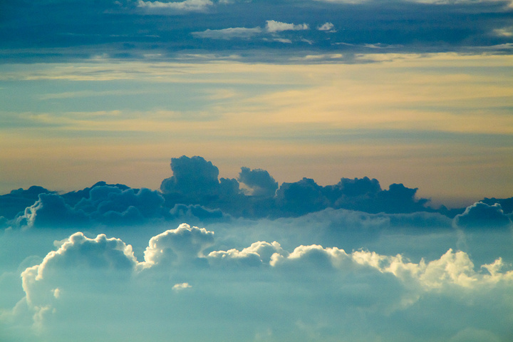 飞机穿过云层,进入视线的反而不是蓝天,而是着层层叠叠的云彩,虽然不知道这么说会不会被K,不过天堂应该就是这样吧,有远近虚实,如梦如幻