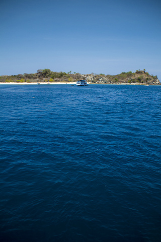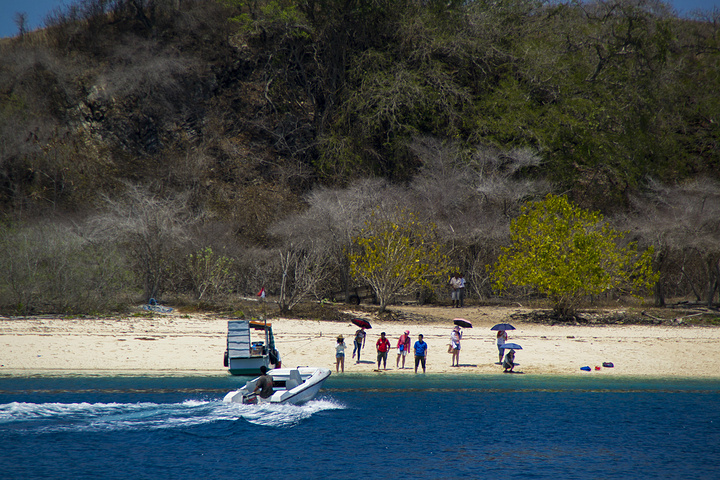 不得不说,在船上的日子真心舒服,没事就躺在懒人沙发上打屁聊天,渴了有饮料和奶昔,还有零食...不一会就到了我们的第一个岛屿(Bidadari Island),这里已经算是外海,所以海的颜色呈现深蓝,洁白的沙滩,只有我们这十几个人,我们的船后面都系着一艘快艇,这样每当我们要上岸的时候,就可以坐着小船乘风破浪了