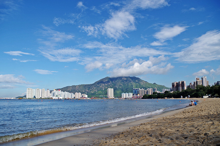 黄金泳滩沙滩全长545米,占地7.85公顷,与新咖啡湾连接。它是屯门最大的泳滩,亦是香港首个人造沙滩,所用的海沙全部来自海南岛。泳滩不但水清沙幼,更设有停车场、小食亭、更衣室、淋浴设备及公共厕所等,方便游客畅泳。沙滩旁长480米的海滨大道,广植椰树,充满南洋风情。