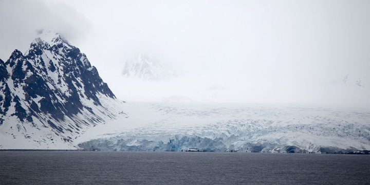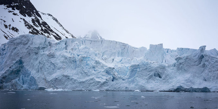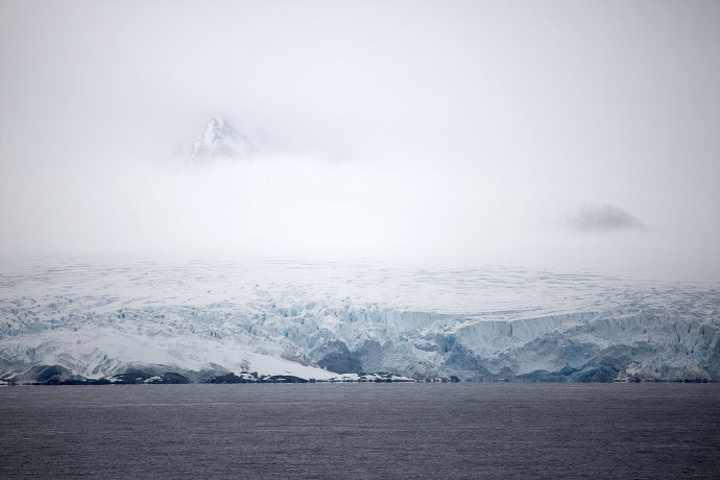 从船上远摄冰川,颇像一幅水墨画。
