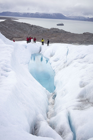 在北极的最后一天,法国的探险队队长决定带我们爬一下冰川,据说是他们第一次这么做。