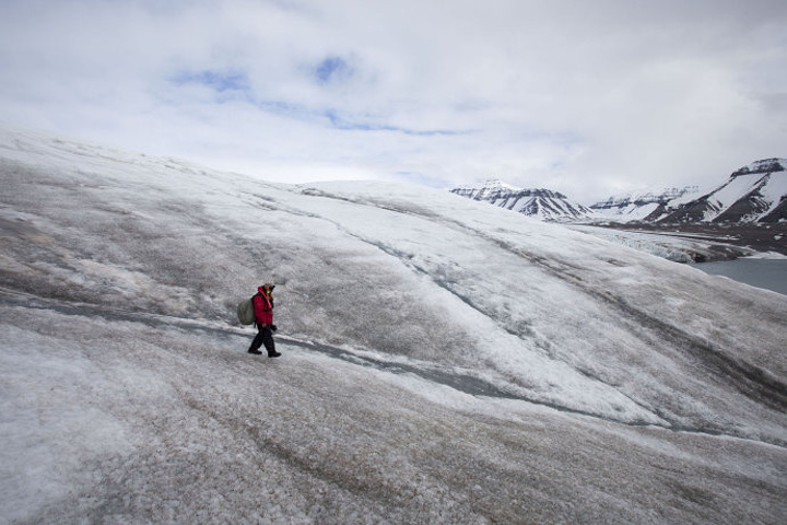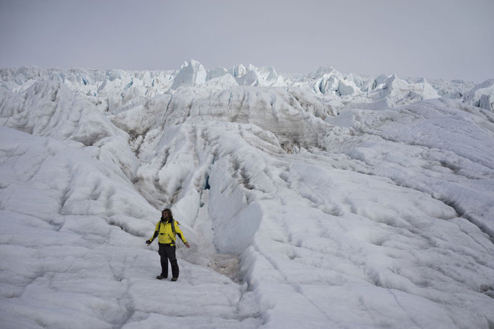行走在冰川上。