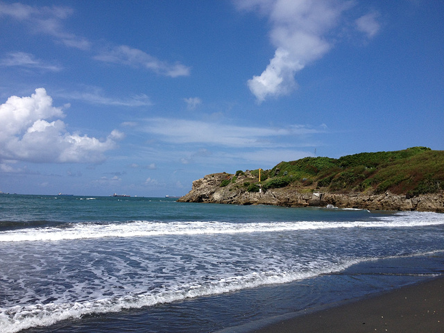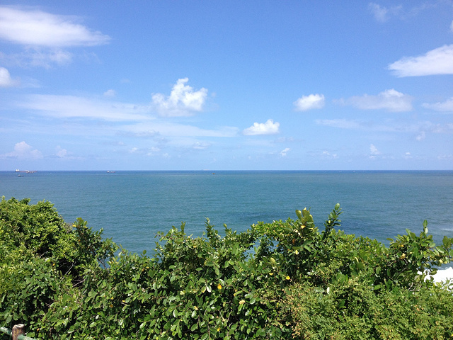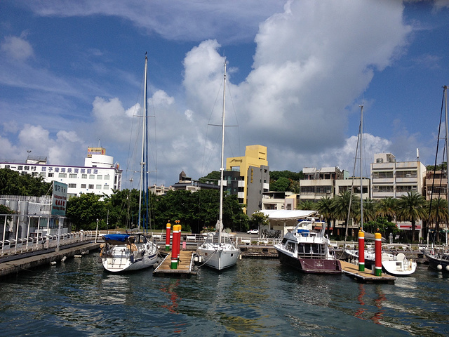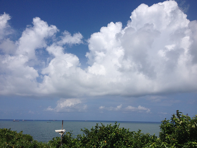 高雄的海本身并没有大的特色,但和城市相得益彰。这里的海已经是南海,热带的海特有的那种风情。海上的云特别的洁白,特别的厚重,和深蓝的天空和湛蓝的大海构成了南国典型的图画。高雄港湾里的帆船也为这幅图做了丝丝点缀。坐船来到旗津,发现岛上的海滨则呈现了这种极致。空荡荡的海滩上,可以尽情的奔跑、呐喊。在那遥远的地方,海与天,已经泯灭了界限。南方的海滨,带来的是一种热情。