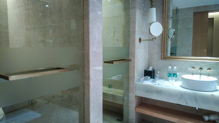 瓶装水除了客房有,浴室也放置,很贴心哟~