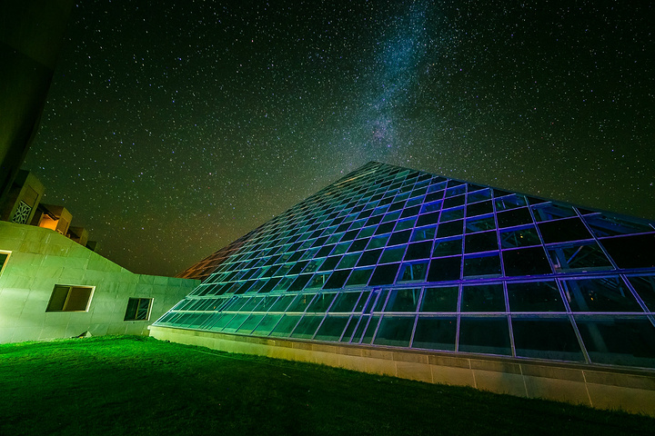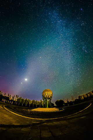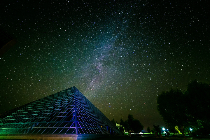 回来酒店,意犹未尽,兴奋的自己一个人在乌漆麻黑的酒店外部,独立拍银河。