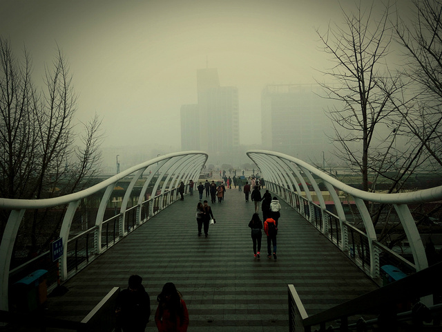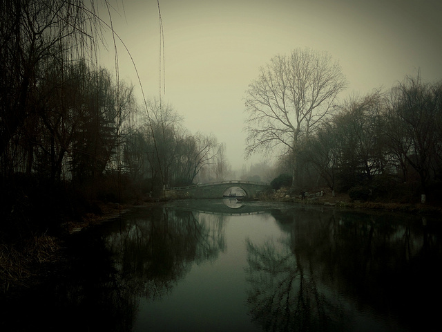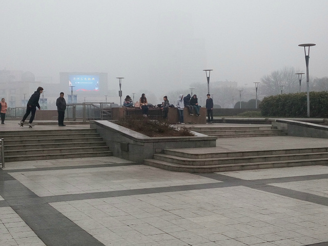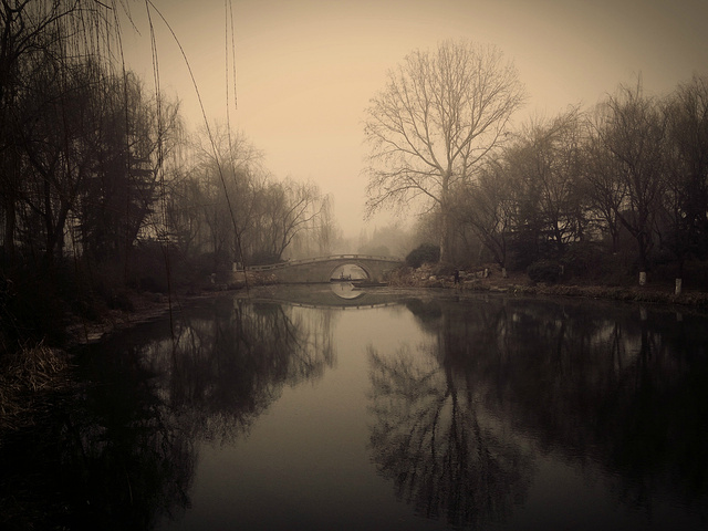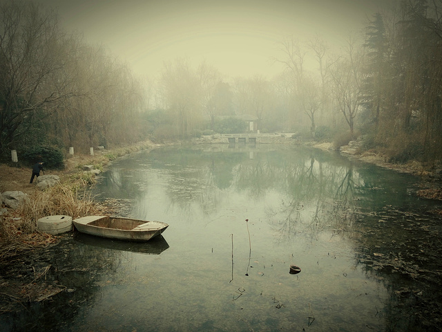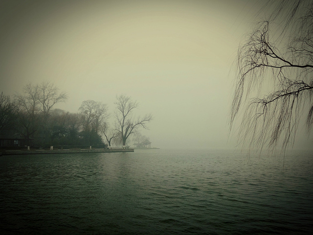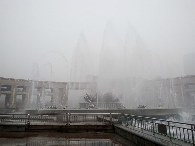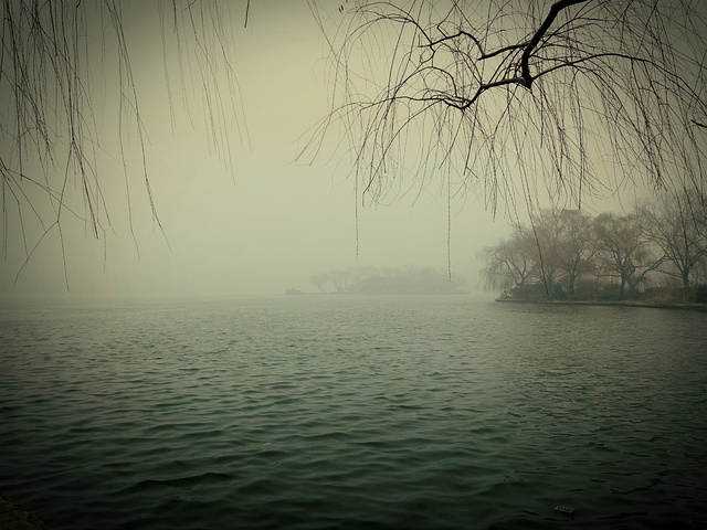 大明湖,原谅这雾霾 白茫茫的一片