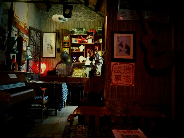 在街巷中有一家茶书栈叫做济南故事,如果累了,不妨进去小酌一杯,好好的休息下,点一杯热饮,静静的读一篇文章,瞬间让你满血复活,小店装修的很好看,很值得进去看一下,依稀记得店家还有一只白色的小狗,叫不出什么名字,只记得你推门进去的时候他会吠叫一声,当你走之后他也会吠叫一身,是说再见吗。很可爱,很安静,店家老板肯定也是个有故事的人,捧着小狗静静的坐着看着书,只要你一进去,你就会褪下所有的倦容。