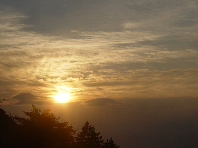 7点零8分,老公带着老大去看日出了,我和老二因为头一天去看日落没看到,已不抱希望,在床上赖着