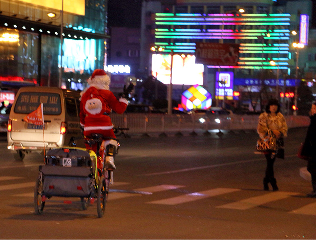 那天正好平安夜,路上偶遇圣诞老爷爷~