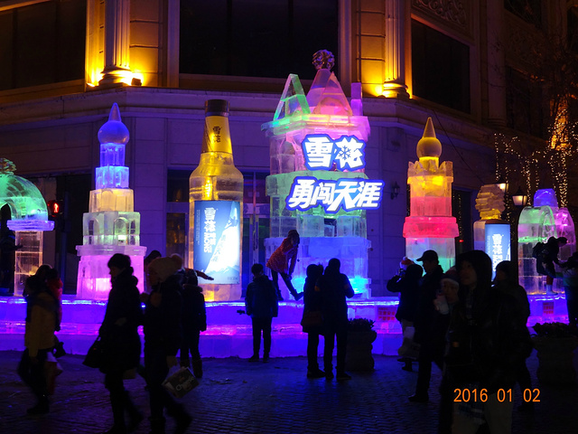 街旁的冰雕每天都会换,反正我元旦期间去的每天都有新的冰雕。
