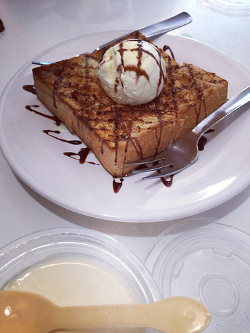 早饭是在阿信的厚土司店吃的,味道真的非常好,点了店里的照片冰淇淋厚土司,也就是我们常在港式餐厅吃的面包诱惑,这里的味道更棒,还要2份双皮奶~
