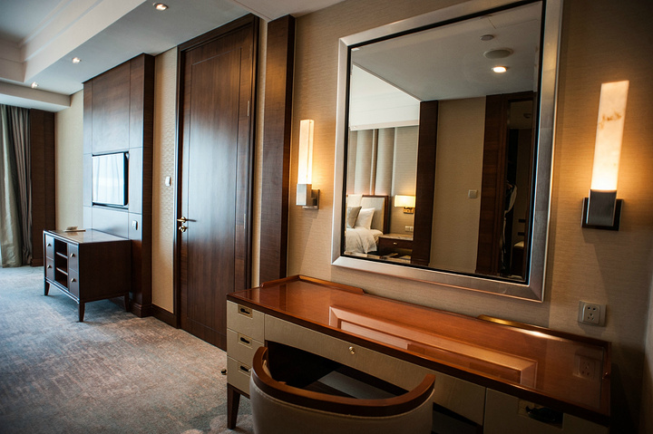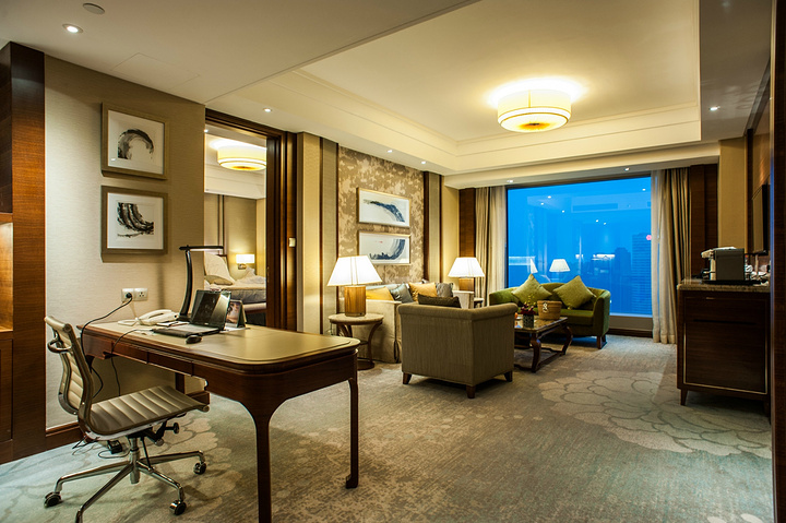 客房是行政套房,除了标准的卫生间和房间之外,还有那宽大无比的客厅,客厅里面完全是按照行政办公人员的需求来配置的,非常的符合现代都市的商务人士开会、入住与办公使用。