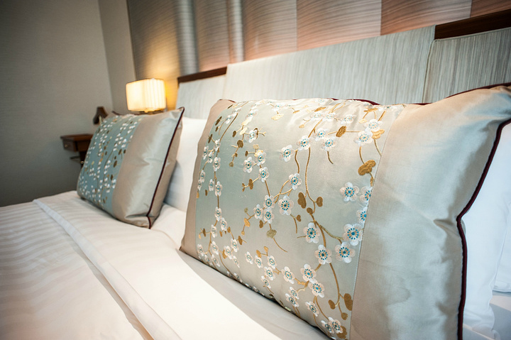 床上用品很讲究的哦,枕头很软,外面的丝绸很滑润。