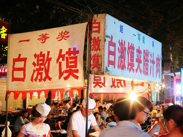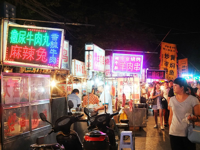 种类繁多,但都不太正宗,除了一如既往的那家火爆凉粉!!!阵势很棒,各种大宋招牌灯火辉煌,晚上夜市的时候也是机动车禁行,这点做的很好!比较坑爹的就是坐下吃喝在酒家菜点的少就被要去每次点酒就交钱。。。。。