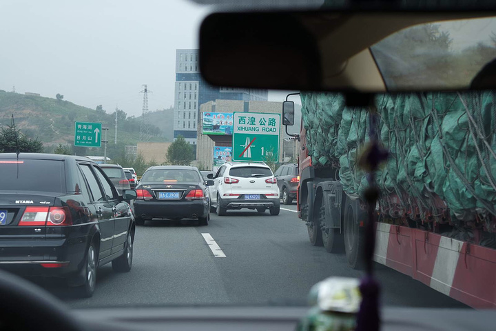 一大早,7点半包车师傅来接我们,在车上我们顺便吃了素面当早餐。朋友自带的普洱茶!如果对肉食消化不太好的,强烈建议自带茶水,解腻!这个是出西宁市区,准备上青海湖的高速,人多车多!来自游记【周末游】与大美青海湖的初次接触