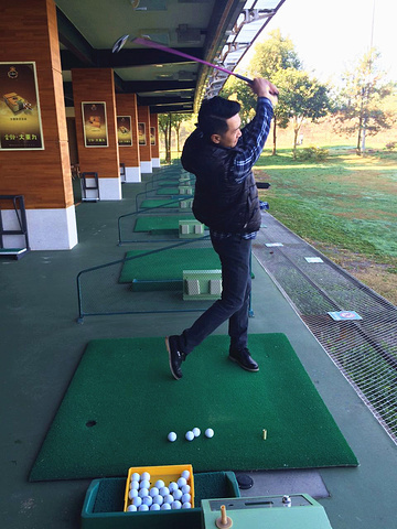 悠闲慢生活第二站:高尔夫练习场。这是我们环生态园是看到的,之前没有打过高尔夫,体验不一样的生活,从自己未曾做过的事情开始。高尔夫的服务人员告诉我们,高尔夫占地17000平米,拥有44个练习打位及1个练习果岭,高尔夫练习场有专业教练现场指导,就算是菜鸟,教练也会耐心的教导,因为我的教练就是不厌其烦的教导、指导我,直到我用标准的姿势打出去第一个高尔夫球,同时也让我享受到高尔夫的无限乐趣。