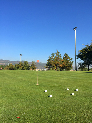 高尔夫练习场的果岭,蓝天绿草,再加上高尔夫球,画面真的太美了。