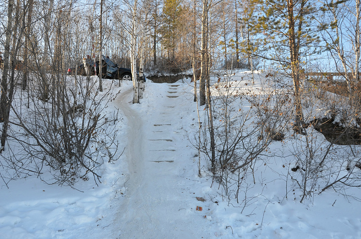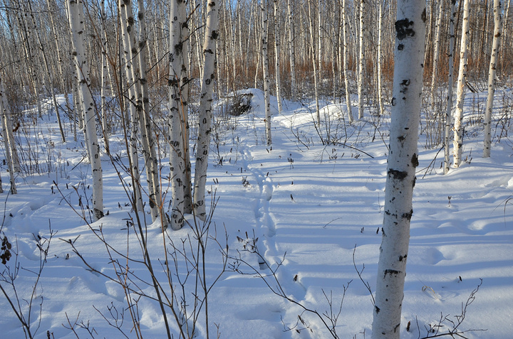 据小马哥说这是傻狍子的脚印,长长的一串,希望傻狍子的生活没有被我们这些外来人打扰。