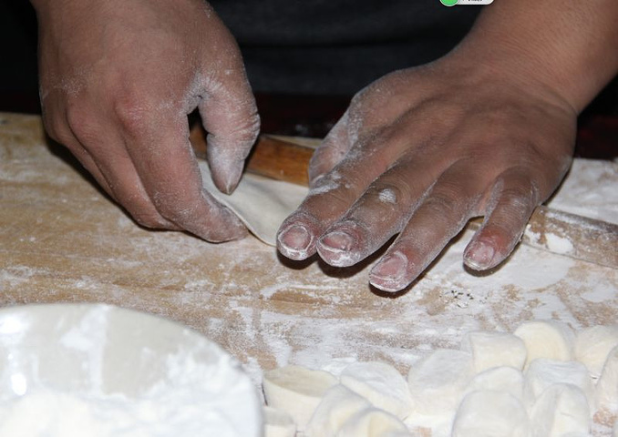 晚上入住北红宾馆,小马哥提前跟老板说好,我们晚上自己包饺子,材料全都准备好,小马哥准备做甩手掌柜,哈哈,结果我们所有人都不会擀饺子皮,他只能自己上了,看他那傲娇的手指。