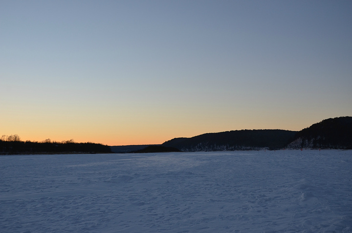 第三站——六三大桥。哈哈哈,起跳失败,桥下的水已经结冰,远处还有车行驶后的痕迹。