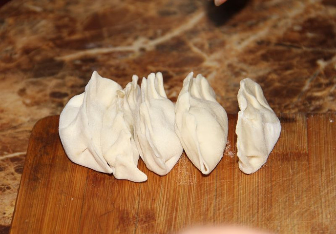 不会擀饺子皮,自然也不会包饺子了,哈哈,后面露馅了好多。
