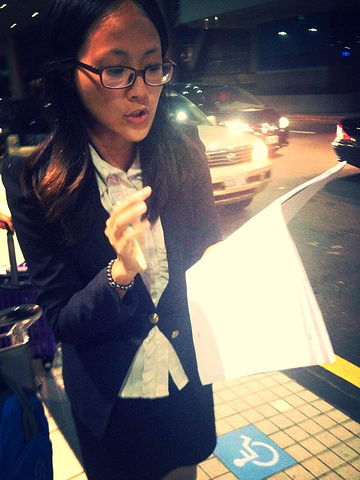 在淘宝拍的入台证送接机,于是找牌子报名字上车子,这位是接待的美眉,带我们去上车