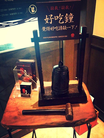 吃完敲钟,全店员工一起喊谢谢,太有意思了,排队四人一人敲一下,喊哑他们