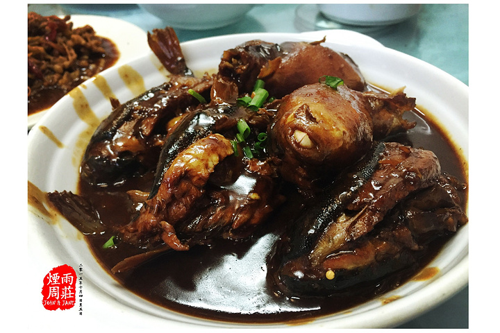 然而我想说的是,周庄的菜肴其实并不让人难以忘怀。除了周庄的一些特色菜比如万三蹄、白丝鱼、草鸡汤以及贞丰饼口味还行,其余家常小菜的味道真心一般甚至口味怪异,特别记忆犹新的是我在古镇生平第一次吃到咸的咕咾肉。。。而且古镇里的餐馆卫生情况确实堪忧。。。所以建议大家,如果要品尝古镇特色菜,一顿就好。相比之下,楼外楼还算可以。除此以外,其实一些邻水的西式酒吧、西式简餐馆以及星巴克也是不错的选择。
