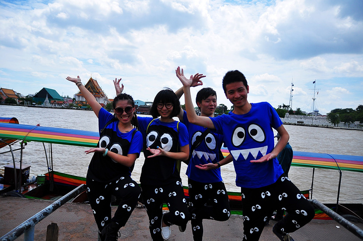 那时候大约是下午1-2点左右,嘟嘟车司机跟我们讲说大皇宫里面在做穆斯林礼拜要到下午3点以后才开放,他可以先送我们到一个码头然后坐一个半小时的船,船可以游湄南河一圈,还拿地图给我们看,这样船最后停靠的码头就在大皇宫门对面,而且时间也刚刚好。因为吉隆坡的国家清真寺当时就是这样,我那次也是没认真查攻略中午去到结果关门了,所以我们就信,嘟嘟车司机开了好久好久收了很便宜的车费(150THI)感觉都绕了曼谷好多条街道,带我们到一个码头。这其实是一个特别特别老套的骗局,目的就是骗游客去坐一个半小时的湄南河游船,船夫可以收取高昂的船资,当时坐船我们每个人花了,估计是那个游船给这些嘟嘟车司机很多回扣吧,所以他们才这么卖力的宣传收这么便宜的车资。这也直接导致我们游船回来,再吃个饭什么的,大皇宫就关门了。。。T.T。。。