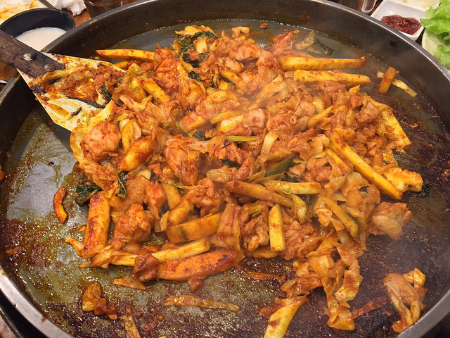 你一定很讶异,韩国人不是不做油腻食品吃吗?不过位于春川的小明洞里的一长条鸡排胡同里的炒鸡排可是一点都不油腻的哦~所以连首尔还有韩国其它地区的韩国人也常常趁假日之时去春川明洞一尝,并且赞不绝口。