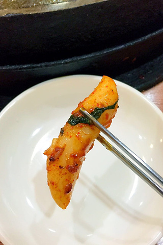 再炒了几分钟,热情的韩国姨母会跟你说到年糕和白菜可以先享用了。