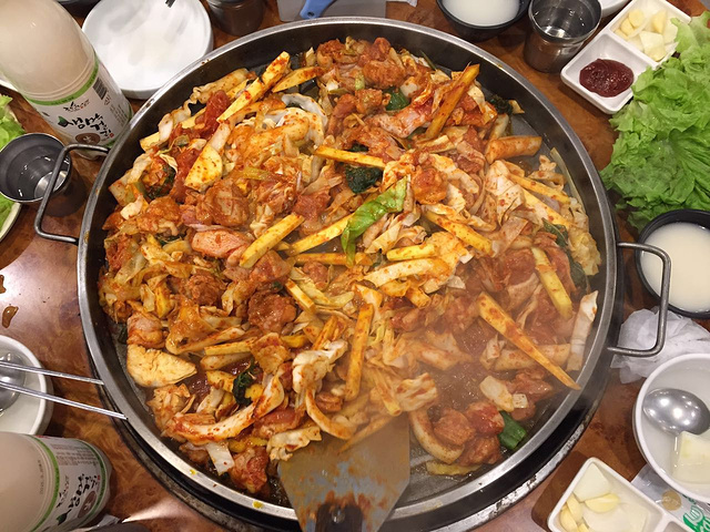 听过都敏俊和千颂伊的炸鸡啤酒爱情,也许那还不是韩国的全部风味。来韩国,一定不能错过的特色美食之一,就是春川炒鸡排。附带着炒鸡排的另一特色美食就是荞麦冷面啦!