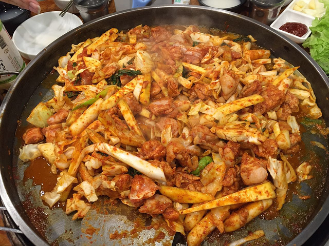 当然,炒鸡排并不是只有我们吃的这种原始炒鸡排,还可以加上一盘2000韩币的芝士放进去更美味呦~还有其它的蘑菇炒鸡排,章鱼炒鸡排~~好多美味的选择呢!