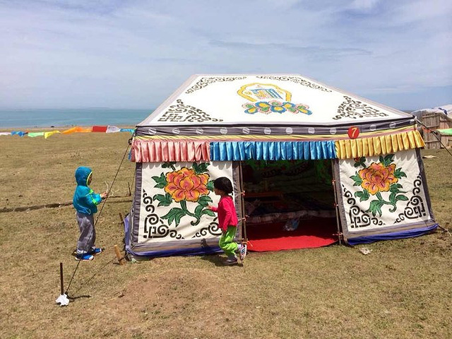 聪聪爸爸找了个临湖的毡房解决,可把孩子们乐坏了,麻麻买的祈福小纸片给娃撒,娃舍不得。
