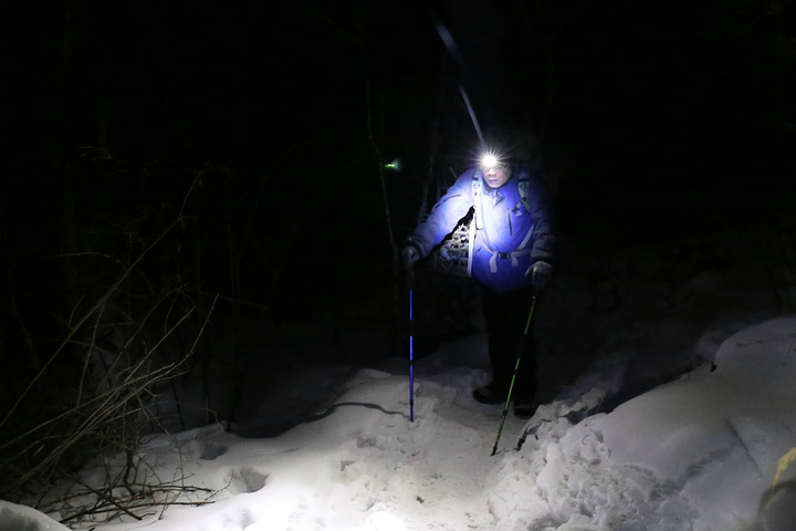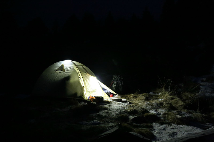 药棚营地(很多驴友也把这里称为“窝棚”)。到这里,天已经全黑下来了,三个咸阳驴友在这里扎营,计划明天从这里轻装上山。这里离我们今天的目的地“2900营地”还有1小时左右的路程。带上头灯,走......