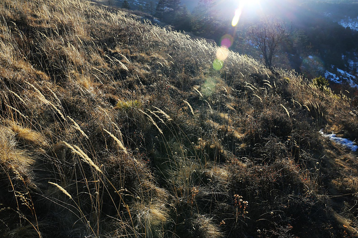 芒草坡。走在这里风极大,不时把我吹的偏移道路!