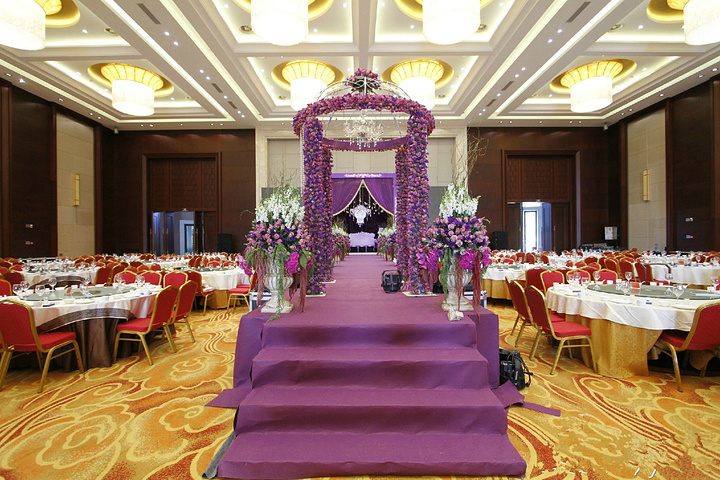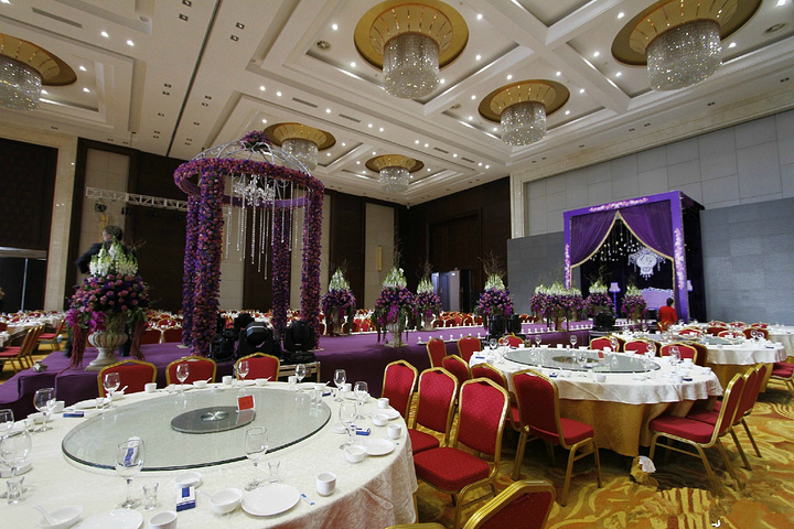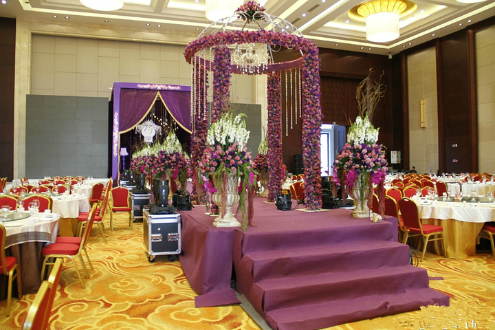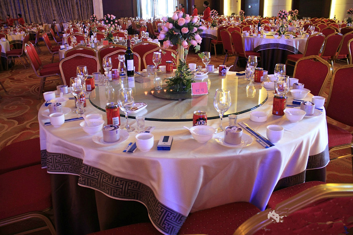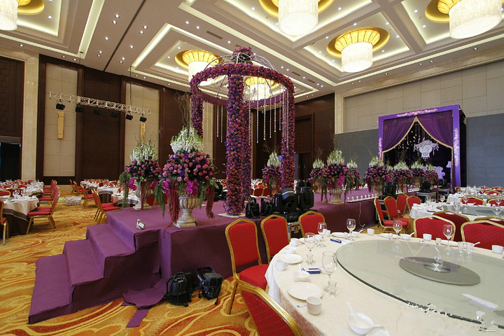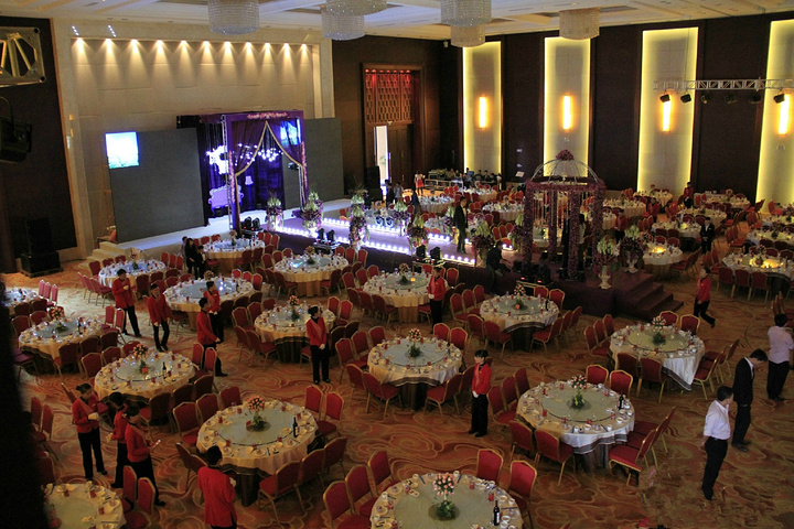 本来说下午要去感受下泡个温泉的,但是老公有午休的习惯,便午休了,可能周末比较放松的缘故,一觉醒来都四点半了,看看时间,又要参加朋友婚礼,觉得时间来不及没去,想想是有点可惜了,晚宴在湖泉酒店的会展馆,离我们住的挺近的,会展馆是一个圆形的建筑,不走进去知道这一建筑到底何用,大厅大气恢弘,颇有会堂的气派。看着应该有1500多个平方,很大很大,问了一下工作人,这里能容纳上千人的会议,还能举办发布会、年会、宴会等。会场也布置的漂亮。美美的新娘,成就了一对新人儿。